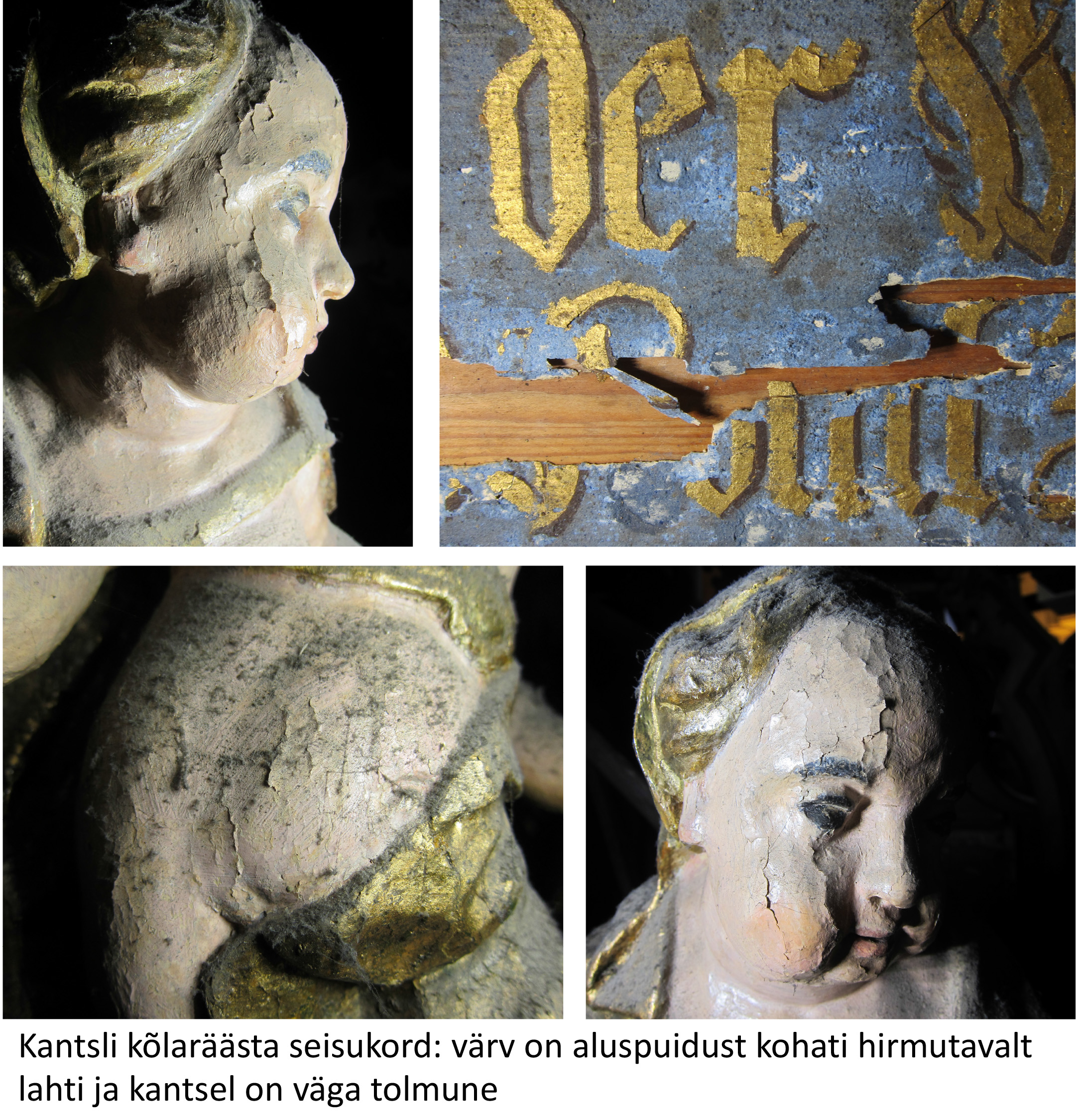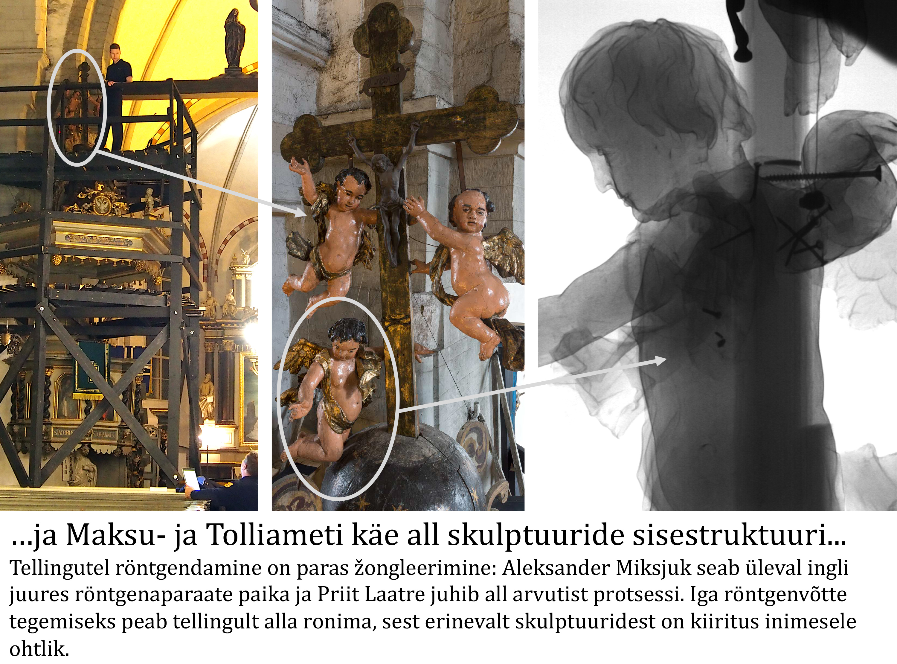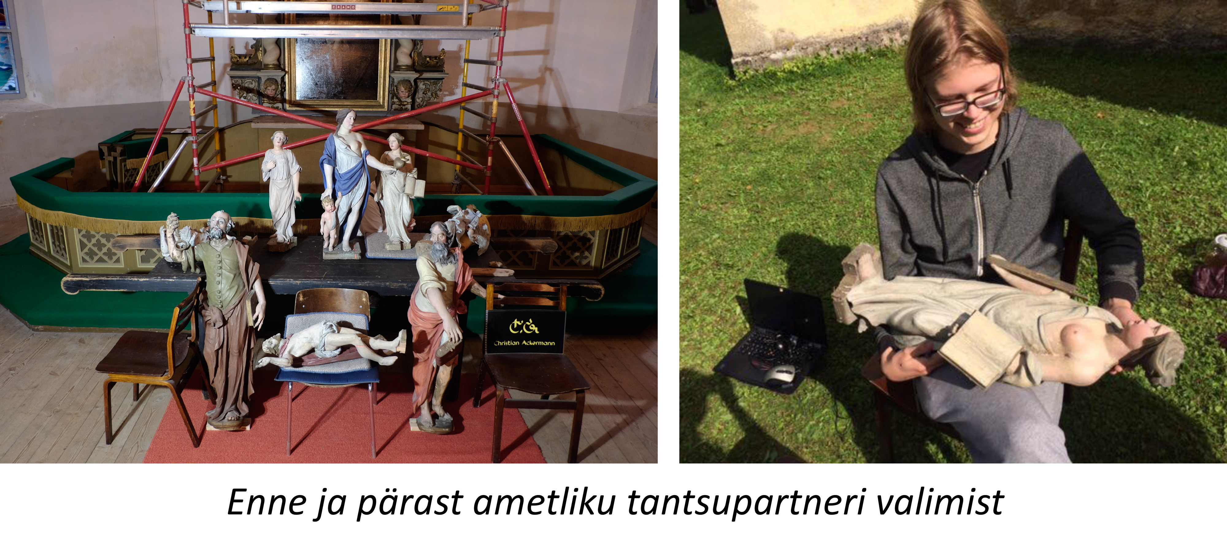 Kuigi labaoriuuringud Simunas võetud värvi- ja puiduproovide põhjal veel jätkuvad, võib juba täna öelda: altariseina kolm karniisifiguuri – kaks inglit ja Kristus Võitmatu kuju on pärit nn Teise meistri töökojast. Niivõrd erineb nende nikerdustiil ja ülesehitus Ackermanni töökojas valmistatud kujudest. Võimalik, et inglite ja Kristuse kuju pärinevad mõnest lähikonna kirikust (ehk nt Haljast või Kadrinast, kust 19. sajandil vana altarisein neogooti stiilis uue retaabli vastu välja vahetati). Või teine variant – Ackermann sai kujud kusagilt/kelleltki ning pidi need altariseina juures ära kasutama (figuuride arvust sõltus retaabli lõpphind). Viimast versiooni ei toeta asjaolu, et altari korpuse ehitusliku struktuuriga need ei sobitu ja skulptuuride paigutus altarile on juhuslikku laadi.