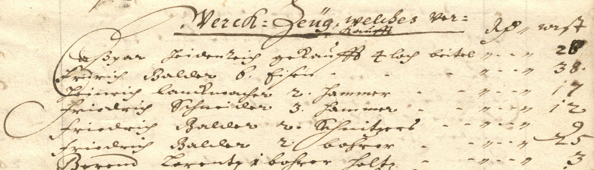 Ackermann acquired his first workshop when he married Anna Martens, the widow of the guild master Elert Thiele. It was located at 4 Olevimägi Street. As the inventory of the deceased Thiele demonstrates, the workshop was abundantly equipped. At least initially, a bountiful selection of tools of that time (drills, planers, saws, axes), workbenches (cutting benches and carpenter’s benches), and all manner of working materials and implements, starting with glue and ending with screws, were all at his disposal. Unfortunately, the tools did not remain in Ackermann’s possession for long. The tools were taken away from him in the course of his quarrel with the cabinetmakers and only a few items were left to him. The town council later forced the local cabinetmakers to pay for the tools since they were part of Thiele’s inheritance proceedings and belonged to all of his heirs, who included Thiele’s children from his first marriage in addition to his widow.